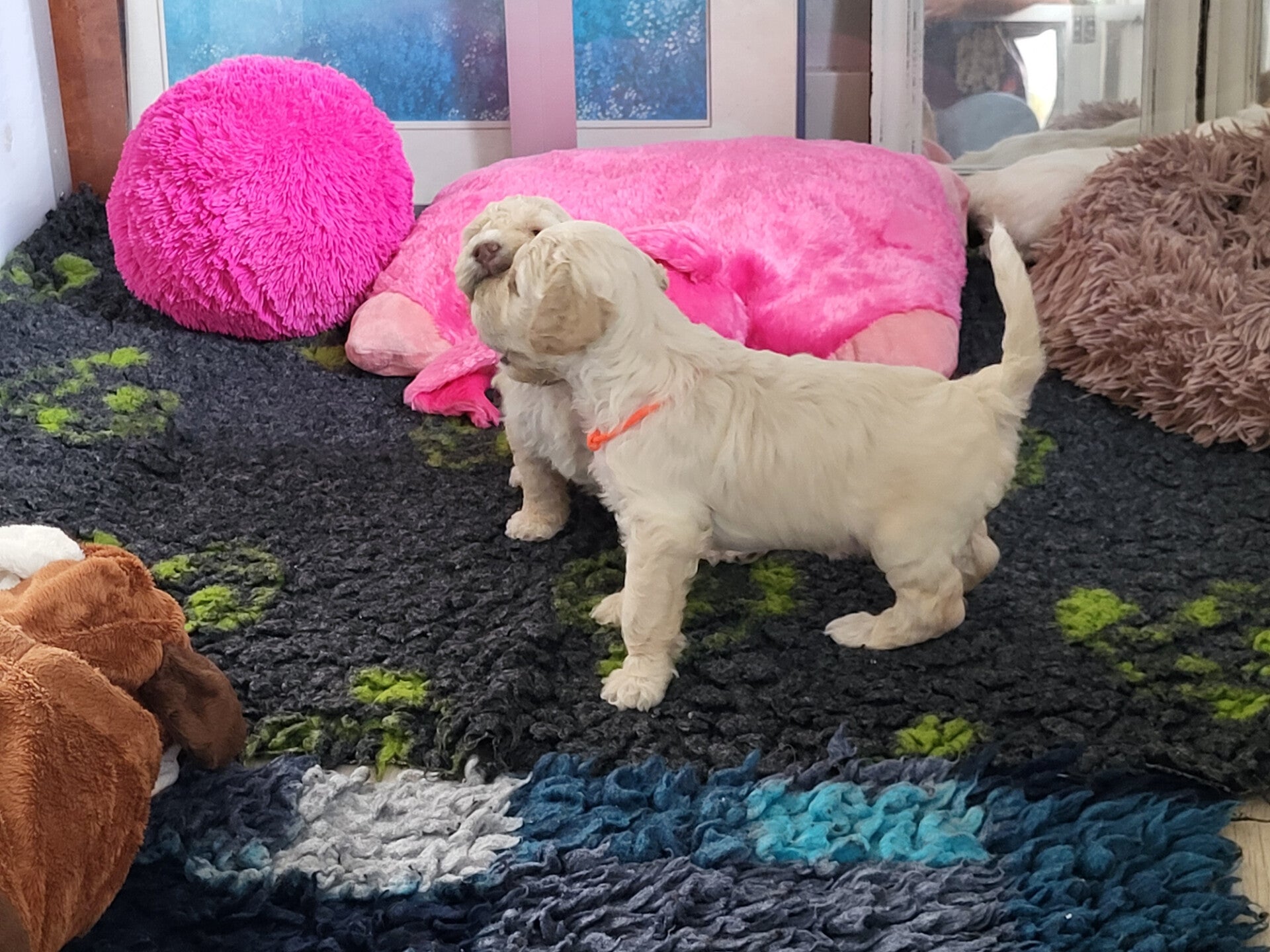 Op 14 mei 2025 zijn de puppy's van Wiep en Bobby geboren. Een waar kleurenpalet. Van zwart tot wit en daar tussen ook nog diverse schakeringen van zandkleur alles met meer of minder wit. Prachtig om te zien.